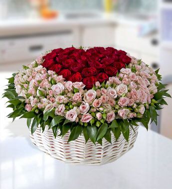 The True Romance Rose Bouquet is the perfect expression of love and passion. A bright burst of color, this bouquet combines red, pink and fuchsia roses, accented with beautiful greens and seated in a Basket
